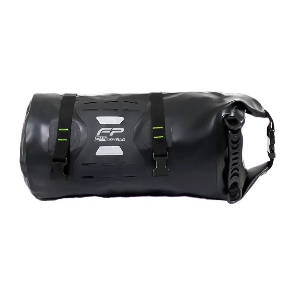 La Maleta Drybag FP C15 Negro está diseñada para los moto viajeros que necesitan una solución de equipaje ligera, práctica y confiable. Su formato tubular de 15 litros es ideal para recorridos cortos, uso diario o como complemento dentro de un sistema de equipaje modular FP.